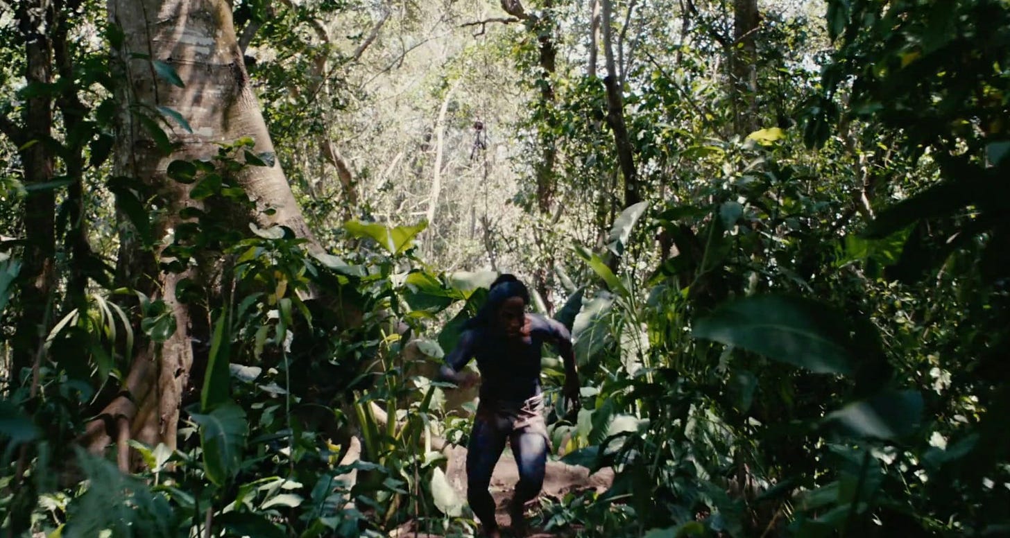 Suddenly, from the waist down we see someone run past the camera as it continues to push in on the greenery. The image grows darker as we inch closer to the multitudes of green leaves. A butterfly serenely flutters by just as a wild boar, or tapir, runs directly at us and past the camera. Wow, what an opening shot.