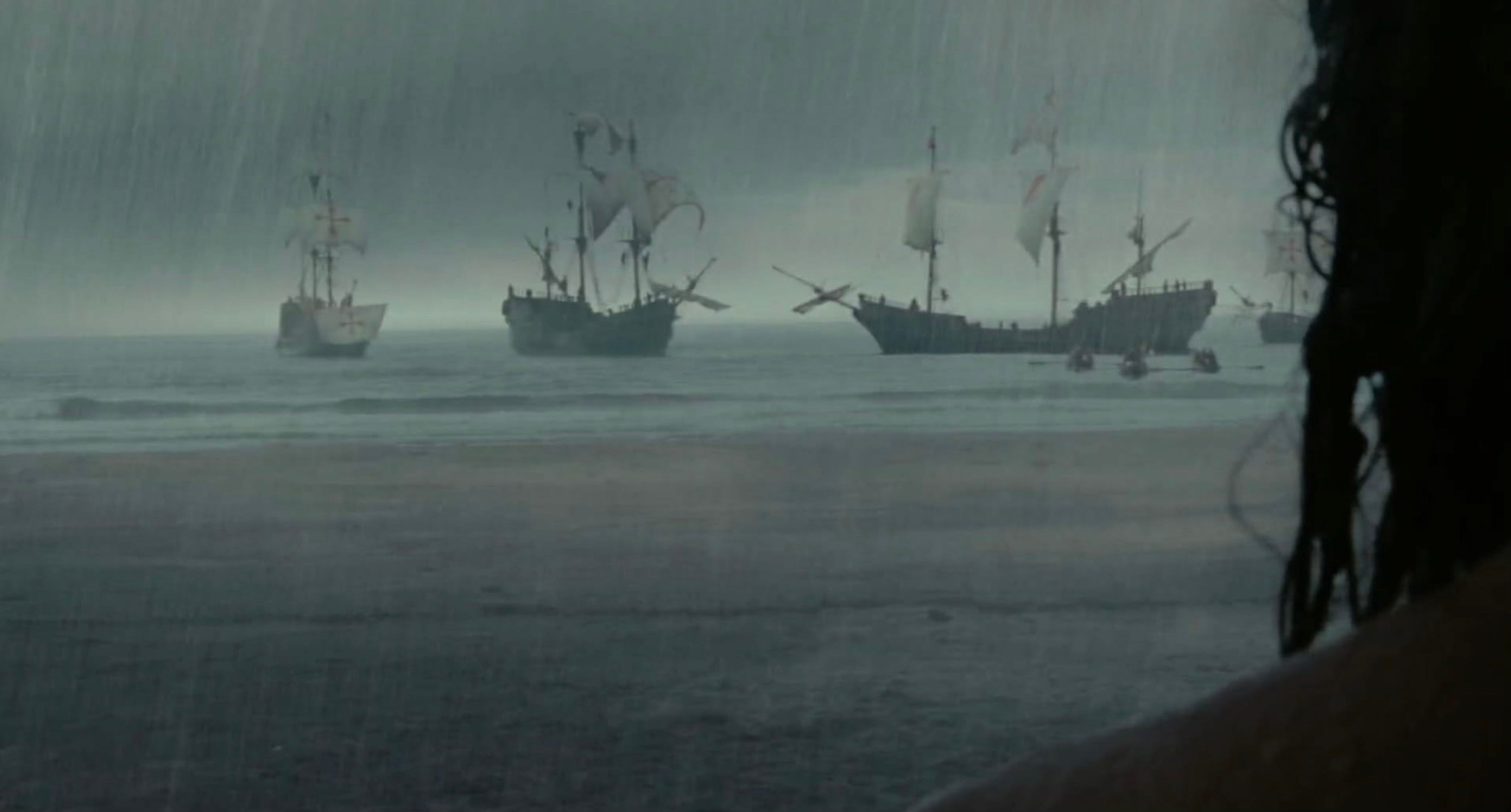In what was close to being my Favorite Shot in the whole picture, the pan around Jaguar Paw to reveal the four giant, wooden ships from Spain, with a smaller boat bringing Europeans to shore as the Mayans look on in shock and wonder never fails to bring that emotional hit to my eyes. It’s a stunning moment.