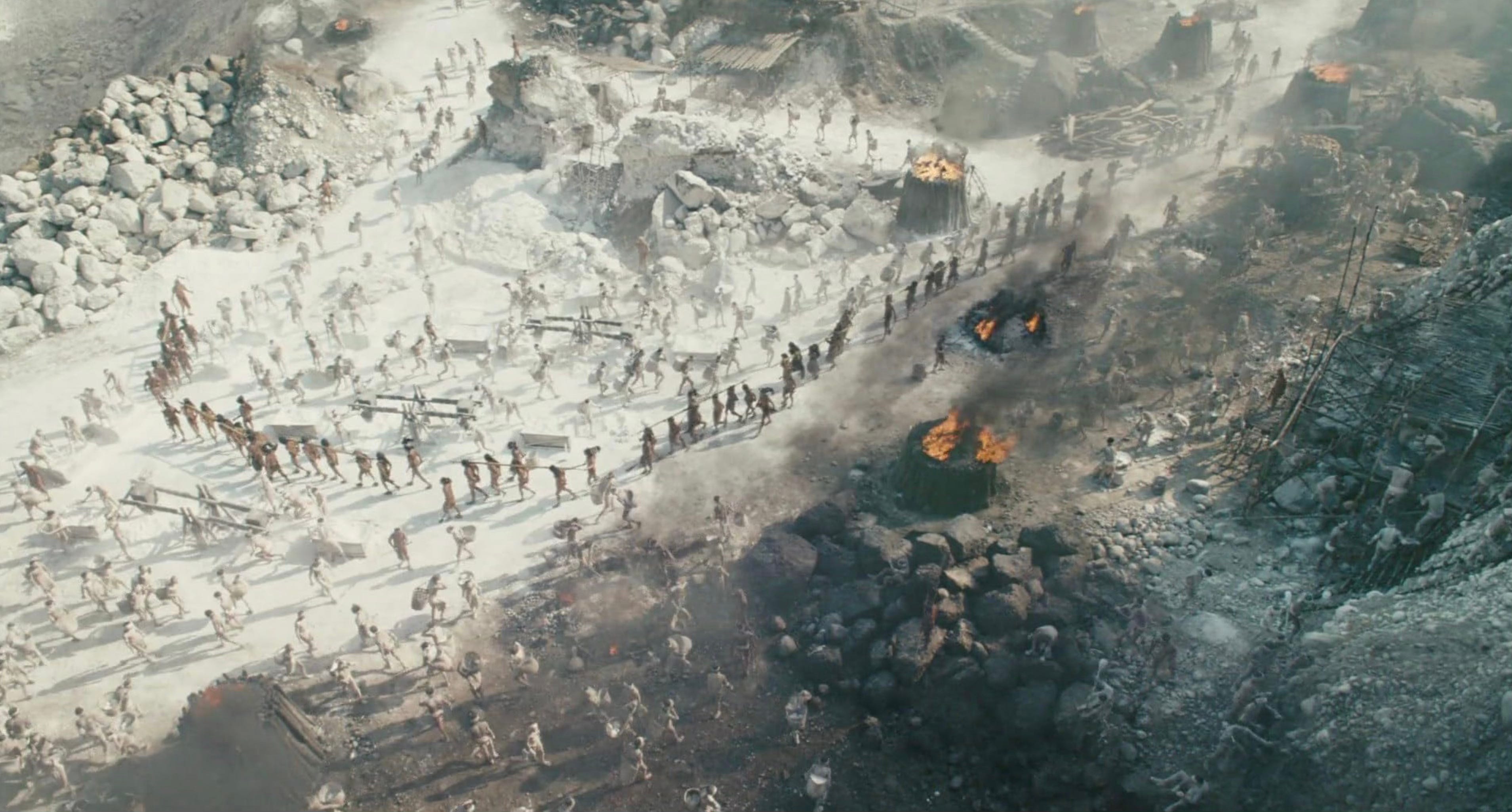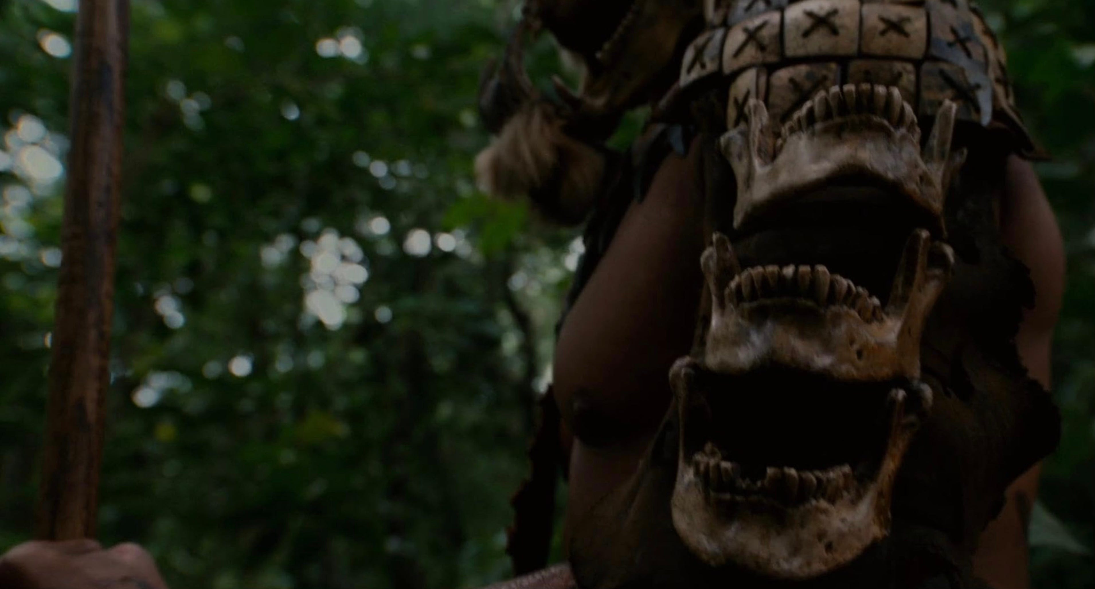 Back to Zero Wolf, who like Middle Eye also gets his own character moments that humanize him and allow us to see him as more than just a one note monster. He has a mini arc with his son, who seems to be at the beginning stages of being a member of this raider party, and we see Zero Wolf bestow a special dagger to him in one scene, encourage the slaver in the Mayan capital to negotiate with his son instead of him, and then gives him the crucial job of “clean up hitter” in the brutal “run for your life while we lob every weapon we have to stop you” sequence. Even the guys who come and destroy your village, enslave your women, and sell you into human sacrifice have families and kids they love and want to see grow up to be successful. One particular moment I love here is when we casually see Zero Wolf doing a headcount of the prisoners, like he’s counting stock of just delivered pallets of toilet paper to Walmart. The casual and easy violence, the ambivalent attitude to suffering, the cold reality of life for these people. Really good stuff.