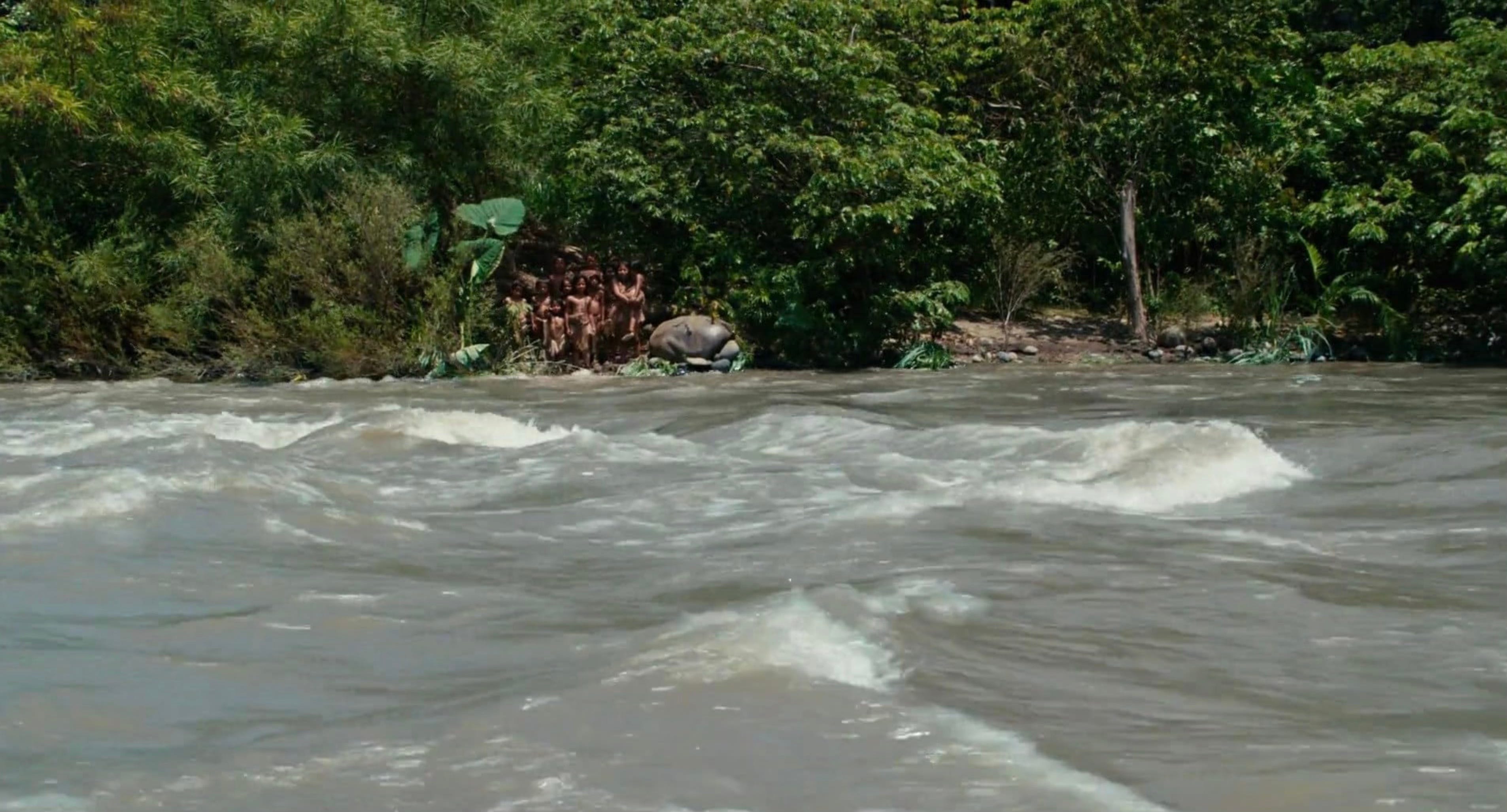 The hunters approach the impaled animal, who is still alive and suffering from the injury. We get our first look at our protagonist, Jaguar Paw, played by the great Rudy Youngblood, as he rushes up to shiv the beast in the neck, ending it’s life. The six hunters then use all their might to dislodge the tapir from the spike trap, lay it down, and cut it open. Jaguar Paw removes the heart, the liver, and the ears, and offers them to members of the group, all while one of the hunters, Blunted, played by the great Jonathan Brewer, waits anxiously to see what body part will be his. You can tell this is of great importance to him as his frustration grows with each body part he is not offered.